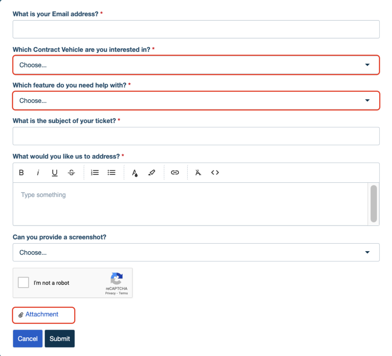Figure 3. For the fastest issue resolution submit a ticket that includes the contract vehicle, Symphony feature, and a screenshot.
